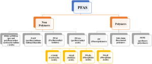 Multiple variants of PFAS exist and are said to be more than 5000 types and can be categorized generally as shown in Fig. 2. These chemicals are introduced into the environment and human body via many pathways such as during production, use and disposal. Due to their highly stable nature, they inhabit the indefinitely in water sources, sea, and soil habitats thus contaminating both animal and plant life [5]. Since they are non-degradable and cannot be naturally removed, they are popular as “forever chemicals”.